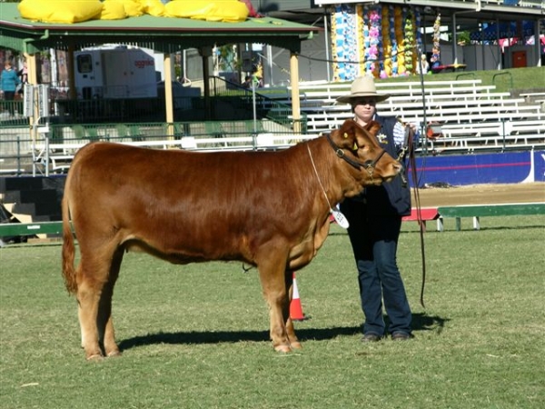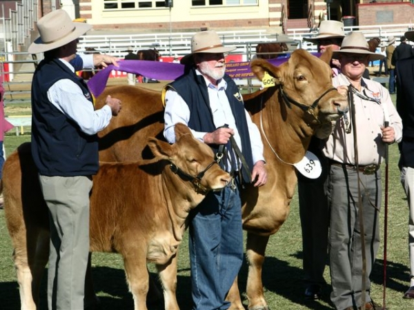 The Ekka has come around again and Midas Gelbvieh was at the forefront again winning both female sections with Midas Windlass H009 taking first place in the 12-16 months class. Midas Windlass G005 added the 20-42 months class to her long list of wins and then was awarded the Champion Gelbvieh cow with Midas Windlass J003 at foot. This gives her the titles of Calf Champion Beef 2012 and then Junior heifer at the Ekka 2012 and now the Senior and Grand Champion Cow Ekka 2013. Midas Humvie H025 was second in his class to the ultimate Grand Champion bull Weetalabah Hulk and Midas G045 stood 3rd in his class which was a strong class.
