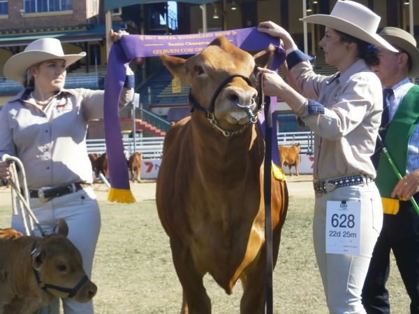 Midas Tanya L35 winning the Senior Champion Gelbvieh Cow