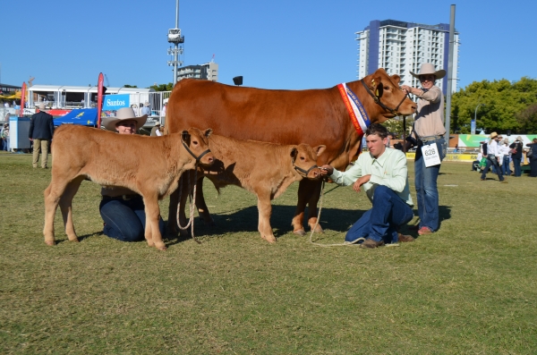 Midas Tanya L35 came first in her class 20-30 months and then Senior Champion Cow and then Grand Champion Gelbvieh Female with her twins at foot.