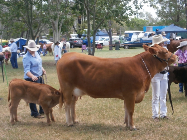 We also had a second team at the Downlands College in Toowoomba -- a total of 2 heifers. Their first outing was at Pittsworth where Midas Opal K3 won Junior Champion heifer and Midas Opal J076 taking Reserve Champion. The next show was Inglewood where Midas Opal J76 turned the tables and took Junior Champion Heifer with Midas Opal K3 taking Reserve Champion. The Toowoomba Royal Show came next with Midas Opal K3 taking out Calf Champion Heifer and Midas Opal J76 filling second place to the eventual Champion Cow. Midas Opal K3 then stood as Reserve Champion Gelbvieh cow. At this show Midas Rocky J101 was shown for the first time on the downs and took out Champion Gelbvieh Bull.